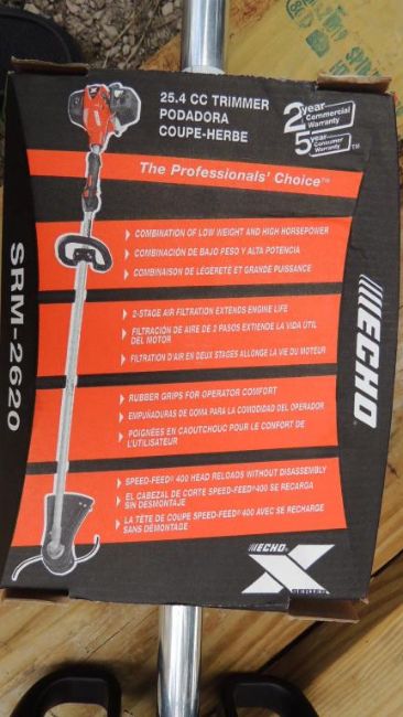 Echo Model SRM-2620 (Unused) String Trimmer. Gas powered 25.4cc, Yr. 2022. SN# U42615133858. HIT# 2374374. Outside in Container. Asset Located at 5515 N US Hwy 281, Marble Falls, TX 78654.