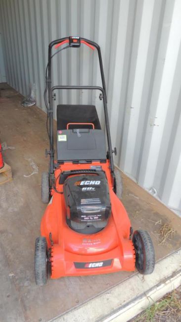 Echo Model CLM 58V (Unused) Mower. 21' Electric mower 58V Brushless, w/grass catcher. NOTE: BATTERY AND CHARGER NOT INCLUDED. HIT# 2374349. Outside in Container. Asset Located at 5515 N US Hwy 281, Marble Falls, TX 78654.