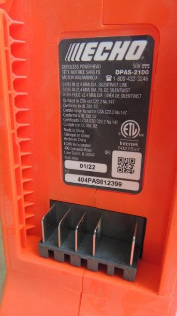 Echo Model DPAS-2100 (Unused) String Trimmer. Cordless string Trimmer, battery powered 56V, Yr. 2022. NOTE: NO BATTERY OR CHARGER. SN# 404PAS012399. HIT# 2374381. Outside in Container. Asset Located at 5515 N US Hwy 281, Marble Falls, TX 78654.
