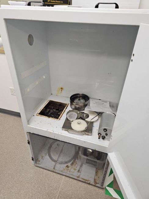 Custom Spincoater With Headway Research Model PWN32 Motor Controller and Motor, In Poly Single Door Cabinet. HIT# 2495169. Asset Located at 25 Olympia Ave. Suite B, Woburn, MA 01801.