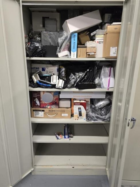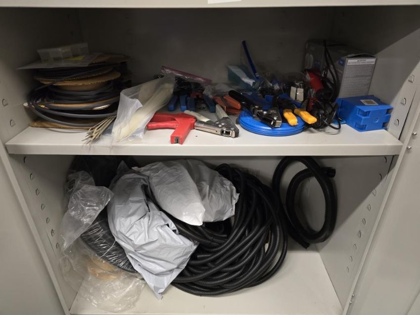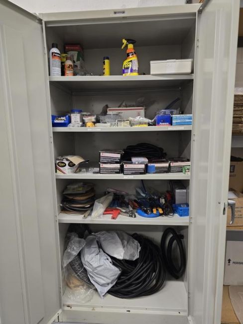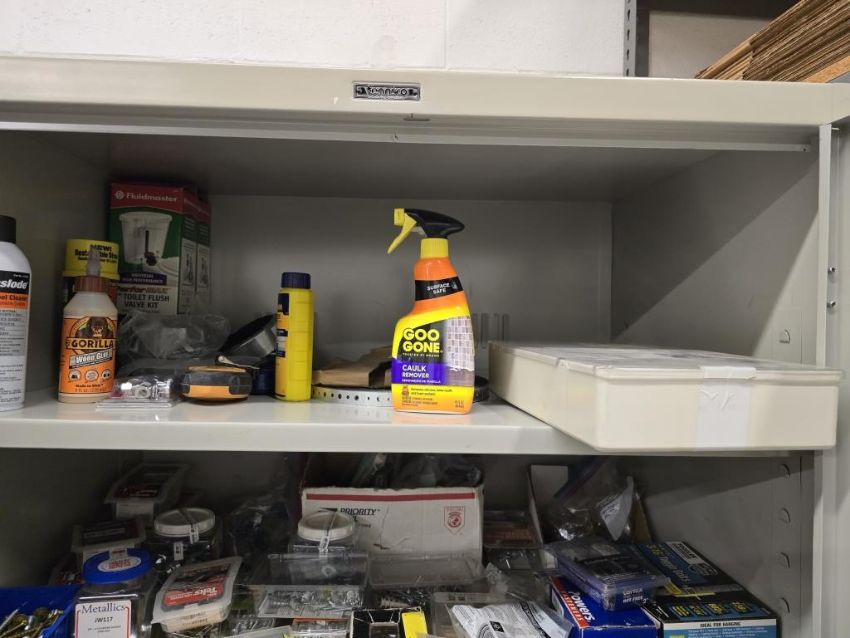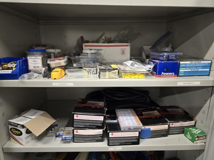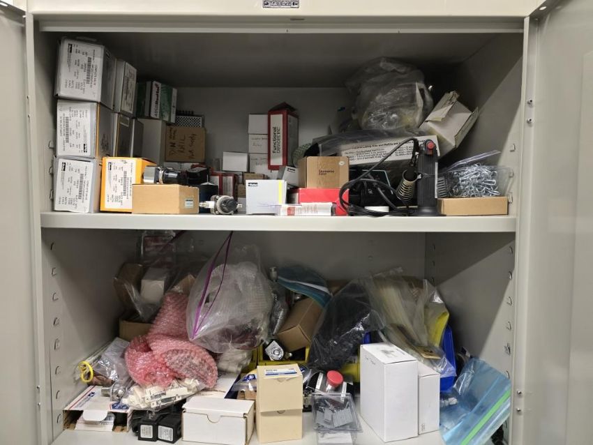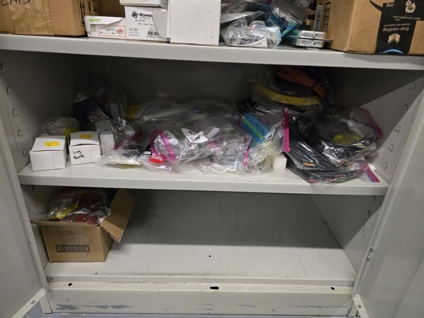 Lot: (3) 2-Door Metal Storage Cabinets And Contents Including But Not Limited To Various Building Supplies, Various Tools, Sensors, Relays, Wiring And Assorted Other Spares. HIT# 2495312. Asset Located at 25 Olympia Ave. Suite B, Woburn, MA 01801.