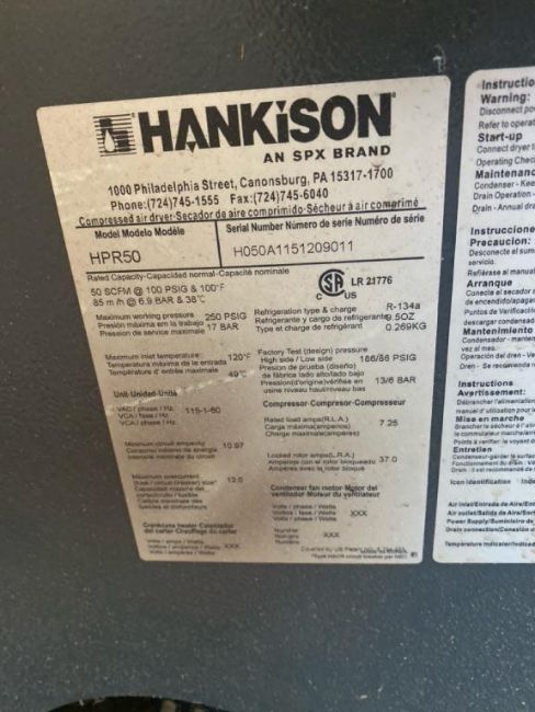 Hankison HPR50 Dryer. SN# H050A1151209011. HIT# 2495095. Loc: Shop. Asset Located at 25 Olympia Ave. Suite B, Woburn, MA 01801.