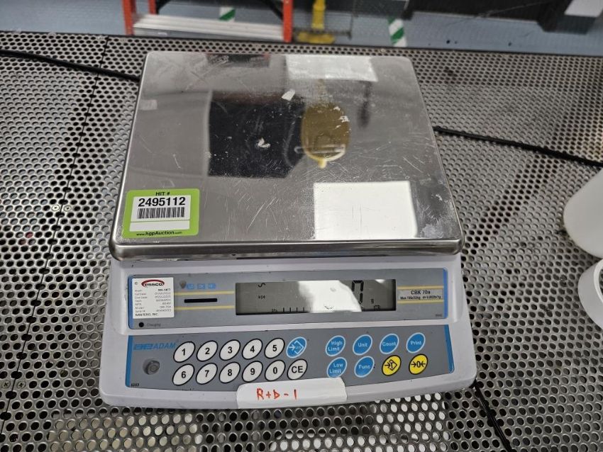 Adam CBK70A Lab Scale, 70lb/32kg d=0.002lb/1g, SN# AE6082033. HIT# 2495112. Asset Located at 25 Olympia Ave. Suite B, Woburn, MA 01801.