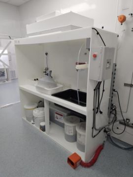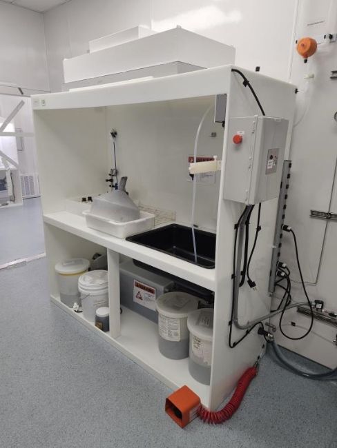 Poly Wash Down Station With Sump, Pump, Upper HEPA Filtration and Foot Pedal Controls. HIT# 2495140. Asset Located at 25 Olympia Ave. Suite B, Woburn, MA 01801.