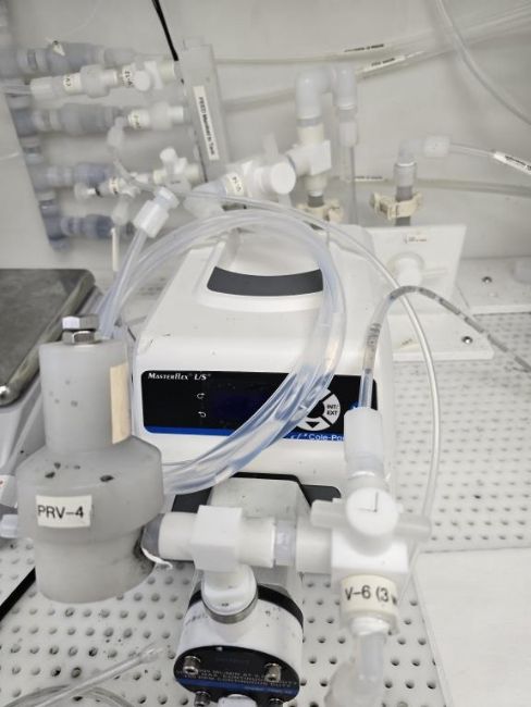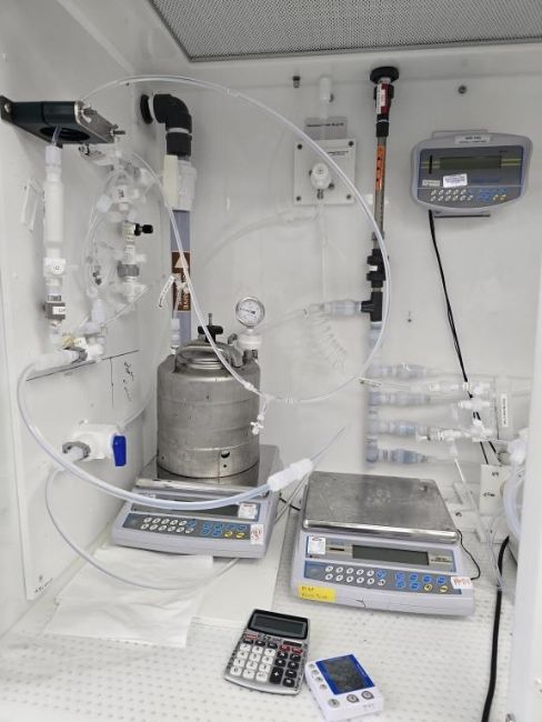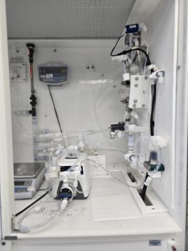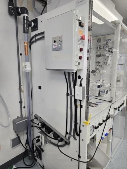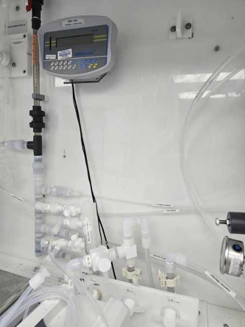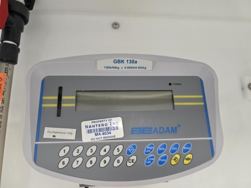 Enclosed Poly Mixing Station and Contents Including Upper HEPA Filtration, (1) Cole-Parmer Model 07528-10 6-600RPM 0.1HP Motor Drive Unit With Model 7090-42 800ML/Min Pump Head, (1) Adam Model GBK-130 130lbs/60Kg Capacity x 0.005lb/0.002kg Lab Scale With DRO, (2) Adam Model CBK-70A Model 70LB/32kg Lab Scales, (2) Pressure Tanks, (1) Ulvac Vacuum Pump, Various Diaphram Pumps, Sensors, Pressure Gauges and More. HIT# 2495159. Asset Located at 25 Olympia Ave. Suite B, Woburn, MA 01801.