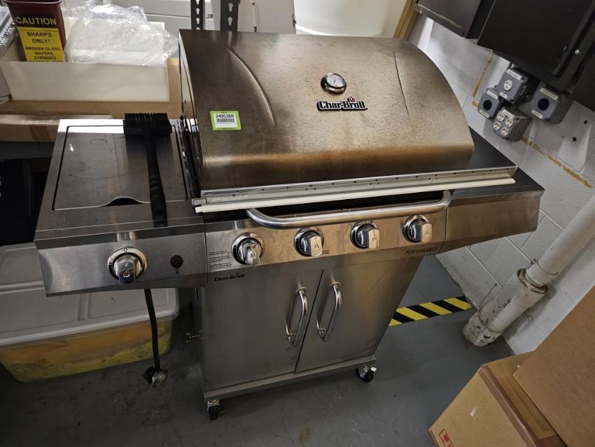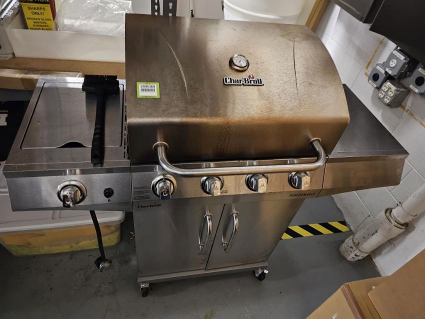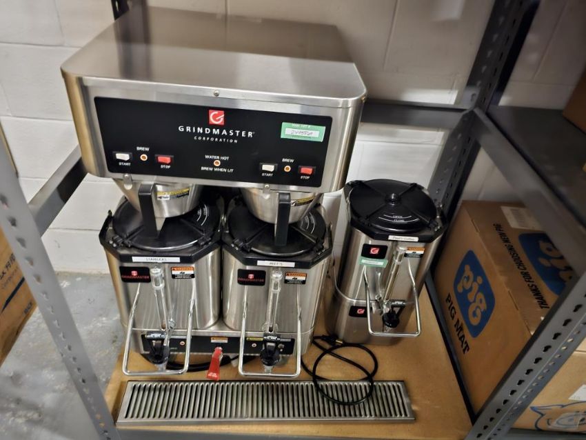 Grindmaster Corporation 2-Pot Coffee Brewing Station with (3) Brew Pots, (1) Char-Broil 4-Burner Gas Grill. HIT# 2495369. Asset Located at 25 Olympia Ave. Suite B, Woburn, MA 01801.