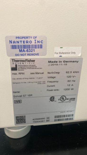 Thermo Scientific - Sorvall ST 16R Centrifuge. HIT# 2495030. Loc: Analytical Lab. Asset Located at 25 Olympia Ave. Suite B, Woburn, MA 01801.