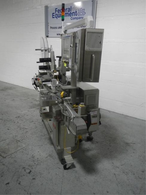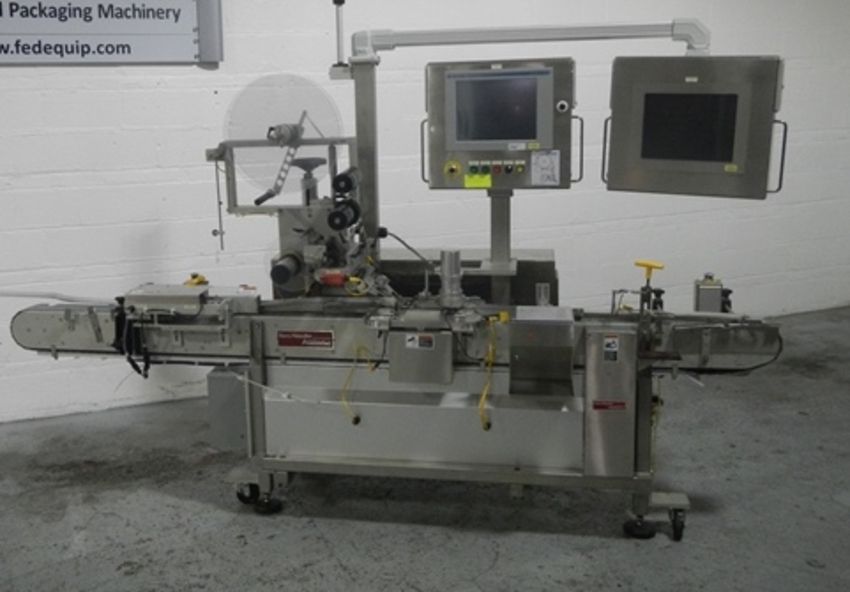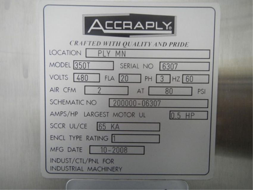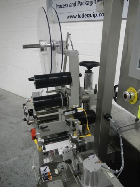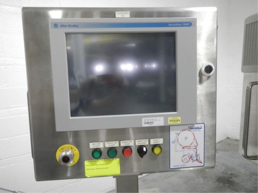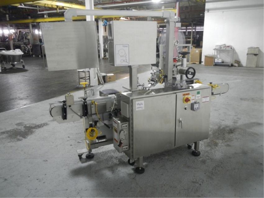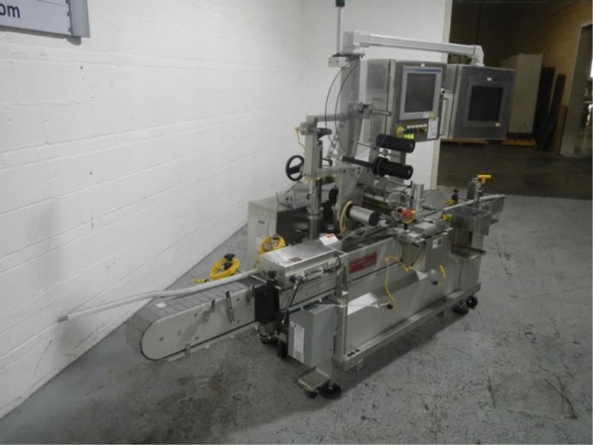 Barry Wehmiller Accraply top labeler, Model 350T, servo driven top label head, label sensor, vision system, timing feed screw, side bump belts and air reject, with controls, serial# 6307, built 2008. FEC# 44616 Asset Located in Cleveland, OH 44127. ***Auctioneer Notice*** Please be advised a handling fee of $200 will apply to the purchase of this lot. This fee is for off-loading of all items in this lot to the dock area for pickup. Buyer is responsible for transport - the fee does not include charges associated with packing and shipping.