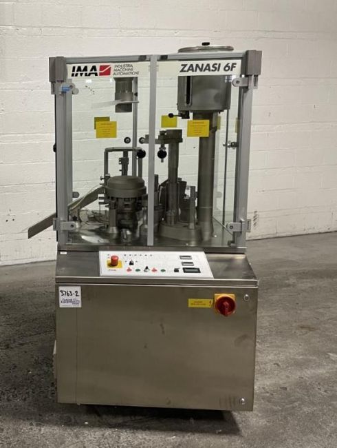 IMA Zanasi 6 F Capsule Filler, rated up to 6000 capsules/hour, no change parts, capable of producing 00-5 size capsules, with controls and Siemens PLC, 230 volt, 3 phase, serial# 35071, built 2006. FEC# 3763-2. Asset Located in Cleveland, OH 44127. ***Auctioneer Notice*** Please be advised a handling fee of $100 will apply to the purchase of this lot. This fee is for off-loading of all items in this lot to the dock area for pickup. Buyer is responsible for transport - the fee does not include charges associated with packing and shipping.