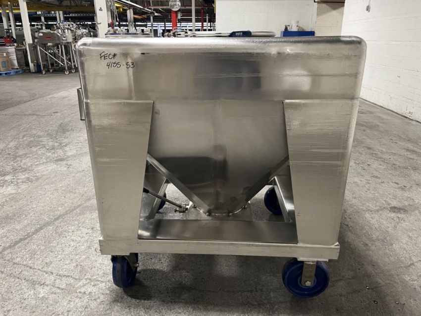 48" x 42" x 10" Tote Systems Stainless Steel Transfer Bins. Bulk Material Tote, with Forklift Sleeves and Casters. FEC# 4155-53. Asset Located in Cleveland, OH 44127. ***Auctioneer Notice*** Please be advised a handling fee of $50 will apply to the purchase of this lot. This fee is for off-loading of all items in this lot to the dock area for pickup. Buyer is responsible for transport - the fee does not include charges associated with packing and shipping.