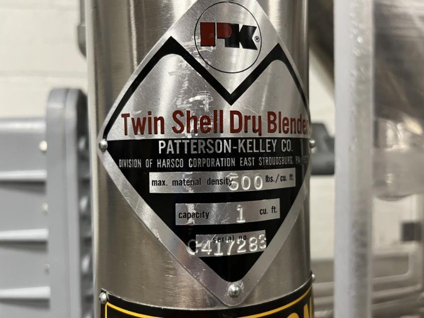 1 cu ft Patterson Kelley twin shell blender, Stainless Steel construction, rated 500#/ cu ft maximum material density, with approximately 1 hp, 230/460 volt XP shell drive (missing motor nameplate), on wheels, serial #C417283. FEC# 208-25. Asset Located in Cleveland, OH 44127. ***Auctioneer Notice*** Please be advised a handling fee of $100 will apply to the purchase of this lot. This fee is for off-loading of all items in this lot to the dock area for pickup. Buyer is responsible for transport - the fee does not include charges associated with packing and shipping.