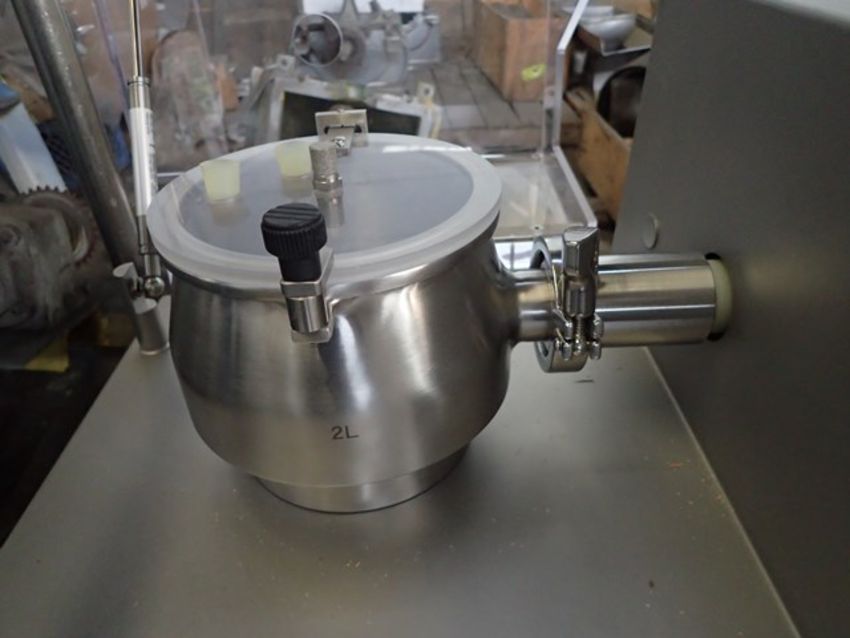 Diosna high shear granulating mixer, Model P 1/6, Stainless Steel construction with 2 liter bowl with chopper, 1 kw, 230 volt motor drive, on base with controls, serial# 355-196, built 2006. FEC# 3045-6. Asset Located in Cleveland, OH 44127. ***Auctioneer Notice*** Please be advised a handling fee of $100 will apply to the purchase of this lot. This fee is for off-loading of all items in this lot to the dock area for pickup. Buyer is responsible for transport - the fee does not include charges associated with packing and shipping.