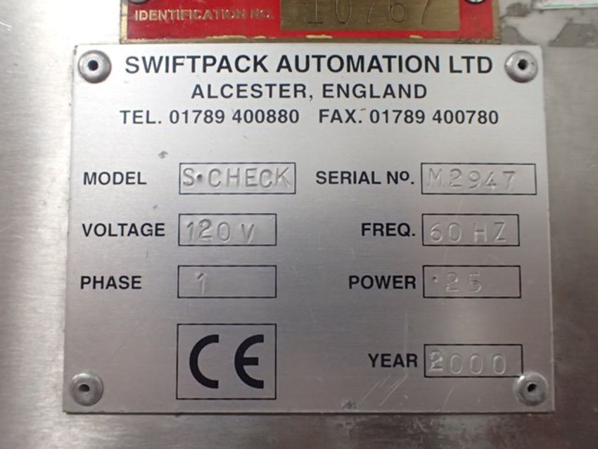 Swiftpack Swiftcount tablet counter, Model S-Check, 120 volt, serial# M2947, built 2000. FEC# 2725-2. Asset Located in Cleveland, OH 44127. ***Auctioneer Notice*** Please be advised a handling fee of $100 will apply to the purchase of this lot. This fee is for off-loading of all items in this lot to the dock area for pickup. Buyer is responsible for transport - the fee does not include charges associated with packing and shipping.