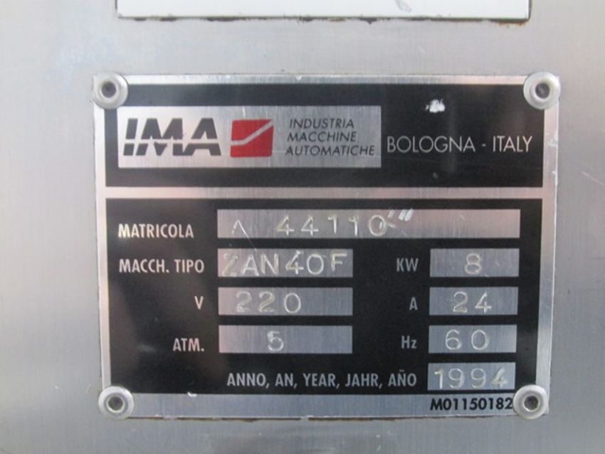 IMA Zanasi capsule filter, Model 40F, rated up to 40,000 capsule/hour, 220 volt, serial# 44110, built 1994, missing vacuum pump, will supply machine with one set of change parts, current available inventory of change parts for this machine are 1, 3, and 4, none with alignment tooling. FEC# 2657-3. Asset Located in Cleveland, OH 44127. ***Auctioneer Notice*** Please be advised a handling fee of $100 will apply to the purchase of this lot. This fee is for off-loading of all items in this lot to the dock area for pickup. Buyer is responsible for transport - the fee does not include charges associated with packing and shipping.