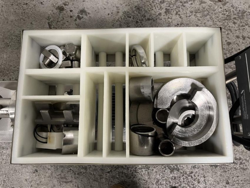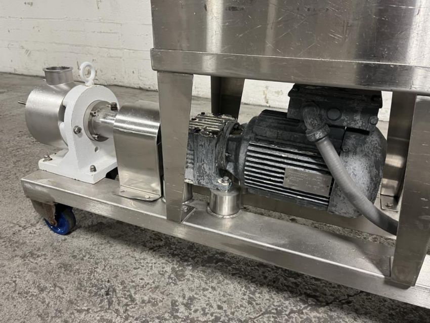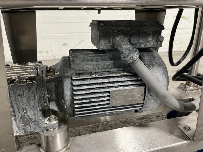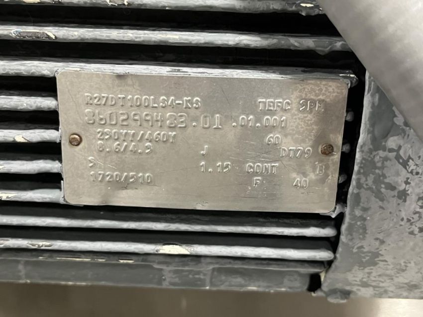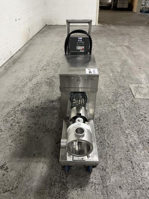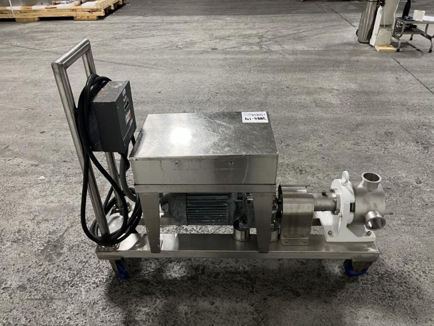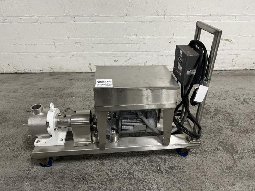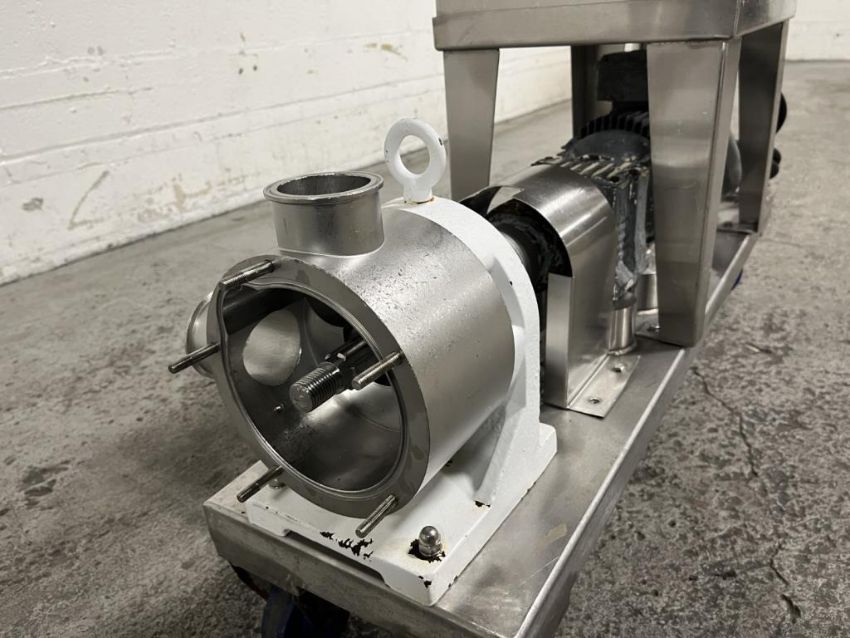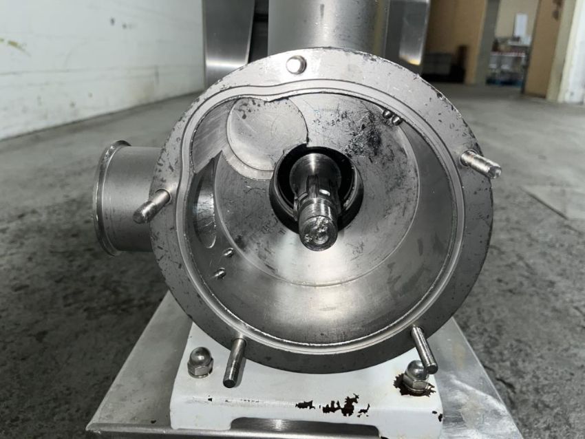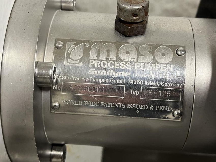 Maso sanitary pump, Model MR-125, .06 gal flow per revolution, .75" max particle size, 800 rpm max speed, 2.5" inlet/outlet diameter, serial# 81960501. FEC# 3886-14. Asset Located in Cleveland, OH 44127. ***Auctioneer Notice*** Please be advised a handling fee of $50 will apply to the purchase of this lot. This fee is for off-loading of all items in this lot to the dock area for pickup. Buyer is responsible for transport - the fee does not include charges associated with packing and shipping.