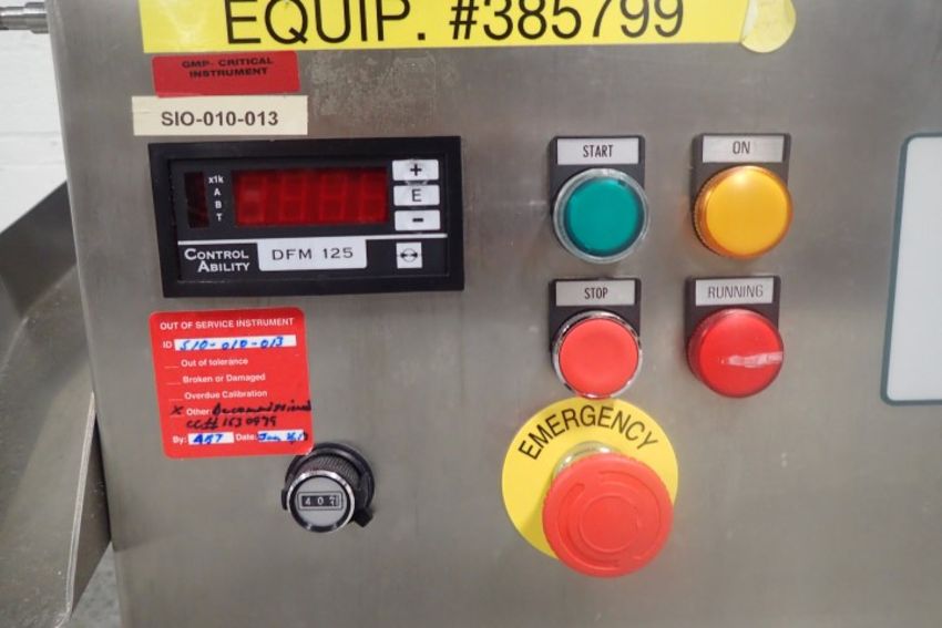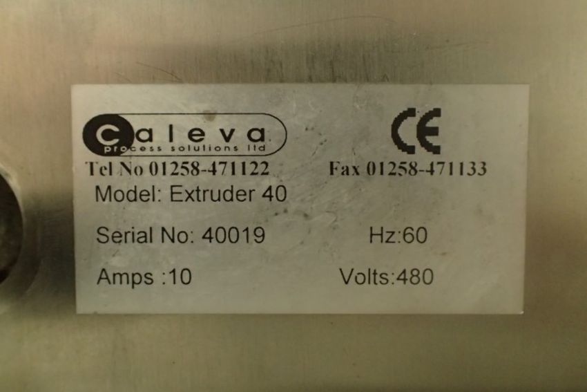 Caleva gear extruder, Model 40, Stainless Steel construction, nominally rated up to 64 kg/hr., pan feed, 480 volt, CE rated, serial# 40019. FEC# 203-32. Asset Located in Cleveland, OH 44127. ***Auctioneer Notice*** Please be advised a handling fee of $50 will apply to the purchase of this lot. This fee is for off-loading of all items in this lot to the dock area for pickup. Buyer is responsible for transport - the fee does not include charges associated with packing and shipping.