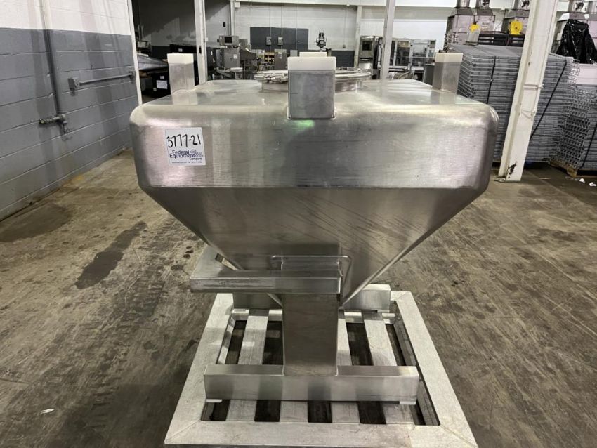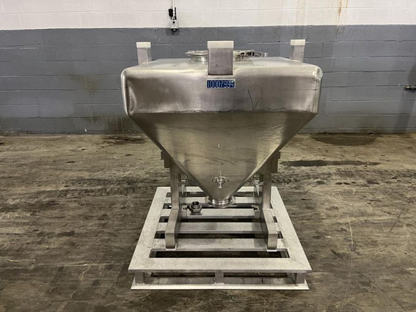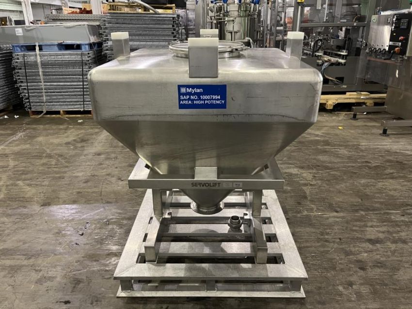 500 liter Servolift bin, Stainless Steel construction, approximately 40" x 40" x 7" straight side x 30" cone bottom. FEC# 3777-21. Asset Located in Cleveland, OH 44127. ***Auctioneer Notice*** Please be advised a handling fee of $100 will apply to the purchase of this lot. This fee is for off-loading of all items in this lot to the dock area for pickup. Buyer is responsible for transport - the fee does not include charges associated with packing and shipping.