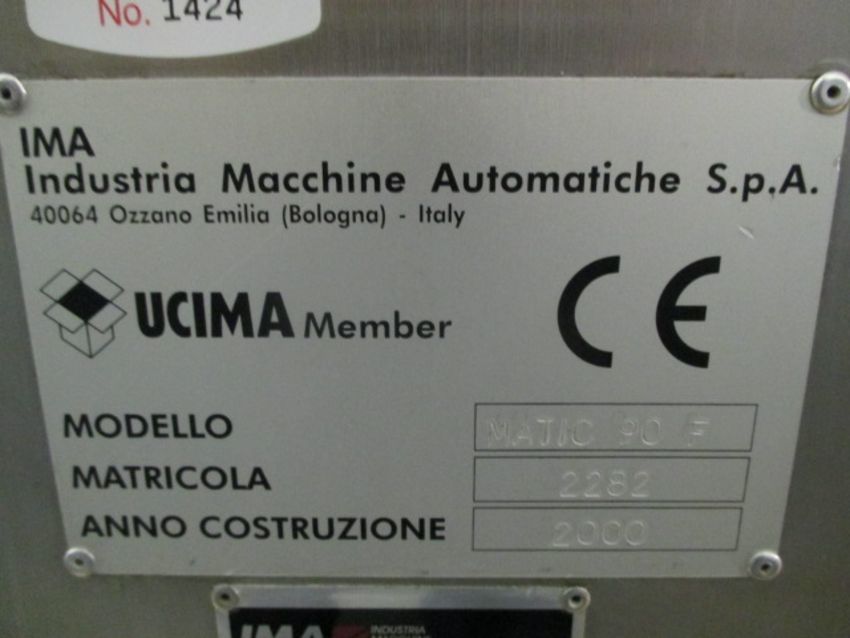 IMA capsule filler, Model MATIC 90F, 30 station, controls and PLC on unit, change parts for processing pellets size 0, 2, 3, 4, SC1000 capsule elevator, vacuum pump, 220 volt, filler serial# 2282, built 2000. FEC# 2980-2. Asset Located in Cleveland, OH 44127. ***Auctioneer Notice*** Please be advised a handling fee of $100 will apply to the purchase of this lot. This fee is for off-loading of all items in this lot to the dock area for pickup. Buyer is responsible for transport - the fee does not include charges associated with packing and shipping.