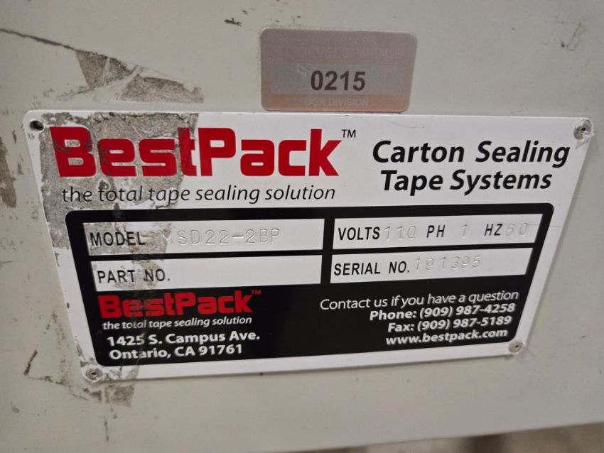BestPack SD22-2BP Portable Carton Sealing Tape Machine/System, Electric Specs: 110V, 1 Ph, 60Hz. *** Auctioneer Notice*** Lot will be available for removal January 6 thru January 17, 2025. SN# 191395. HIT# 2452276. Warehouse. Asset Located at 200 Hicks Street, Westbury, NY 11590.