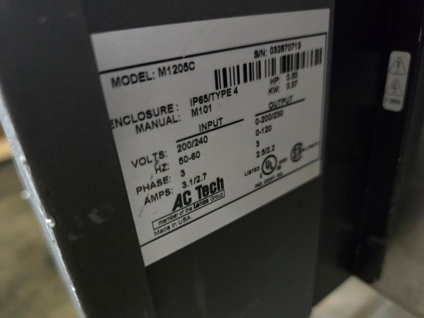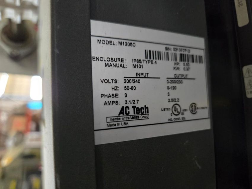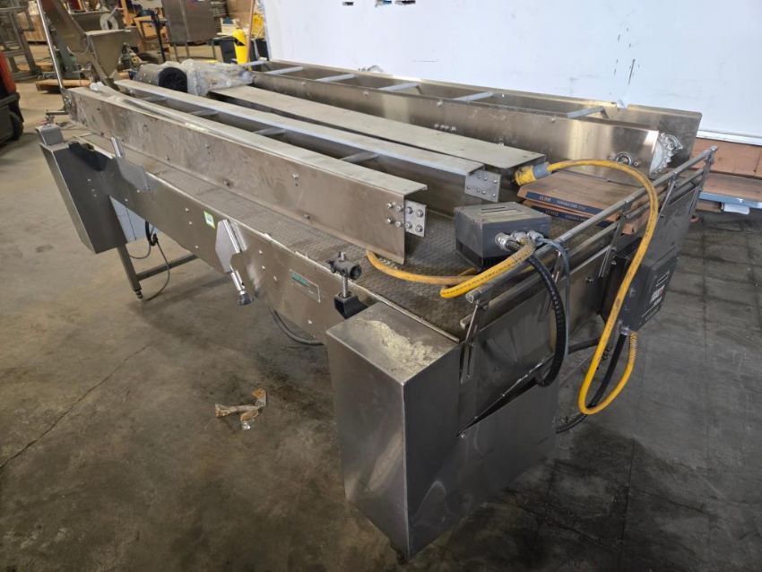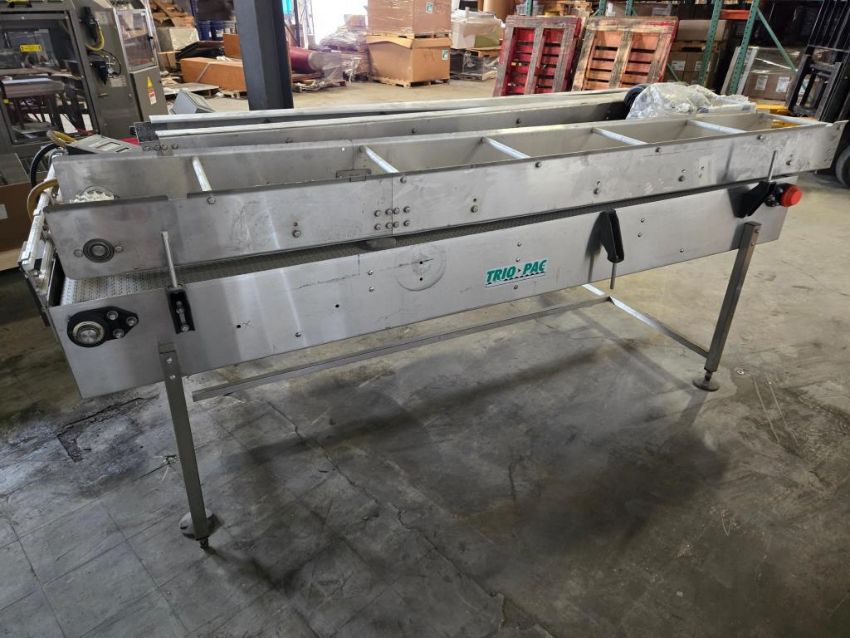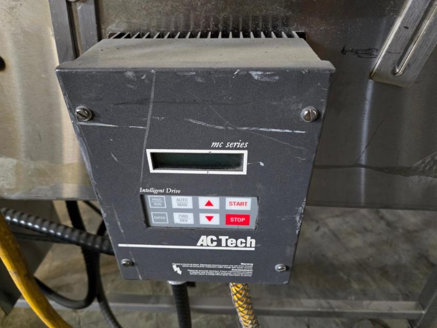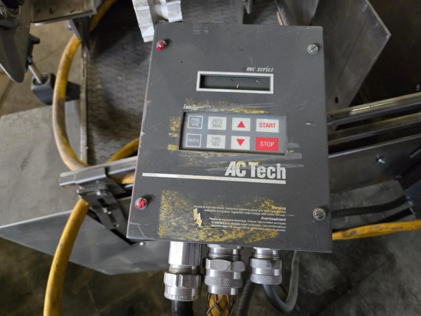 Trio -Pac 7231-T1 Stainless Steel 48"x92" SS 48"x92" Surge Style Conveyorized Bottle Collection Table w/ (2) AC Tech Model M1205C Speed Controllers. *** Auctioneer Notice*** Lot will be available for removal January 6 thru January 17, 2025. HIT# 2452280. Asset Located at 200 Hicks Street, Westbury, NY 11590.