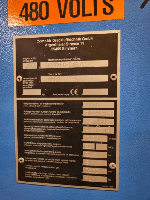 CompAir L45SR Rotary Screw Air Compressor, 73.75HP/55kw, Electric 460V, 3 Phase, 60Hz. *** Auctioneer Notice*** Lot will be available for removal January 6 thru January 17, 2025. SN# 8A27350-24B/0051. HIT# 2452298. Warehouse. Asset Located at 200 Hicks Street, Westbury, NY 11590.