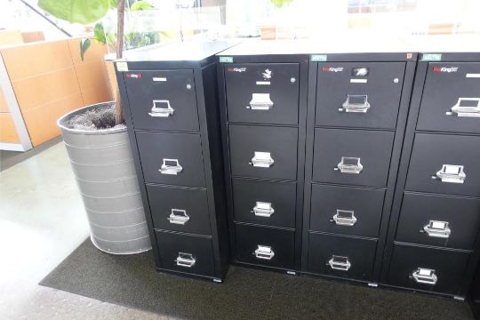 FireKing 25 Lot of (3) Fire Resistant File Cabinets, Dimensions 32"x18"x53 (No Key Found). ***AUCTIONEER NOTICE*** Removal Deadline is November 22nd - No Exceptions. HIT# 2478862. Loc: Building 2 Offices. Asset Located at 1414 Harbour Way S #1901, Richmond, CA 94804.