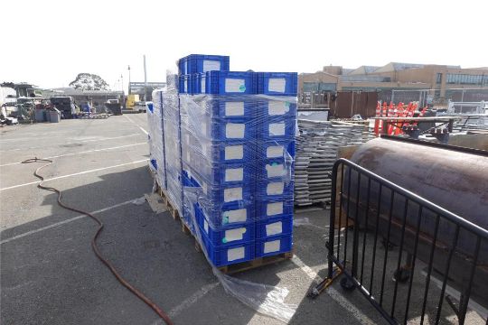 Lot: (4) Pallets of (Approx. 200) Assorted Plastic Industrial Totes. ***AUCTIONEER NOTICE*** Removal Deadline is November 22nd - No Exceptions. HIT# 2483038. Loc: Exterior Asset Located at 1414 Harbour Way S #1901, Richmond, CA 94804.