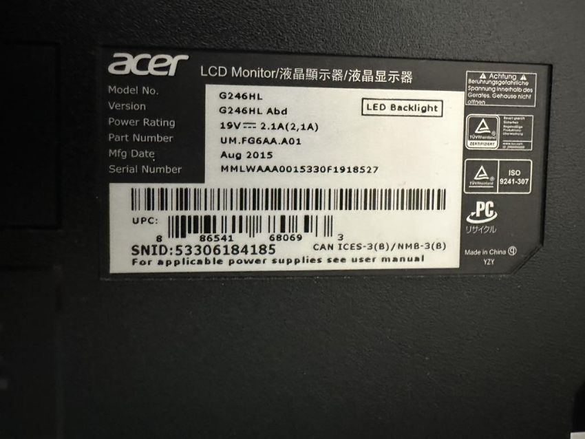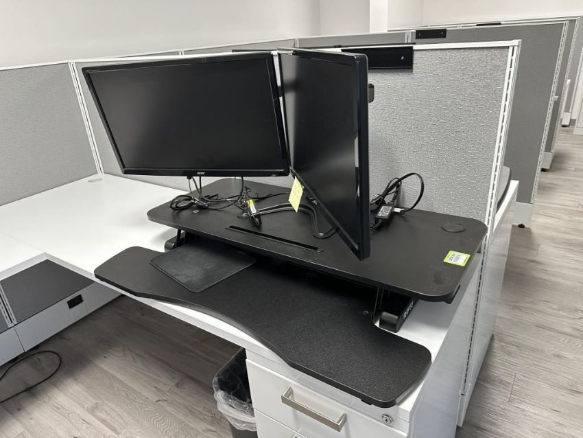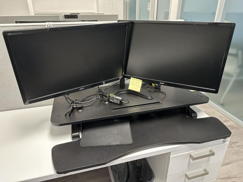 RIF6 Dual Monitor Standing Desk Converter with (2) Acer G246HL LCD Monitors. HIT# 2498360. Loc: Office. Asset Located at 228 Shaw Road, South San Francisco, CA 94080.