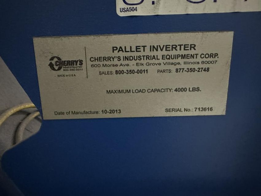 Cherry's Industrial Pallet Inverter, 4000 Lbs. Capacity. HIT# 2498369. Loc: West Wall. Asset Located at 228 Shaw Road, South San Francisco, CA 94080.