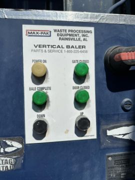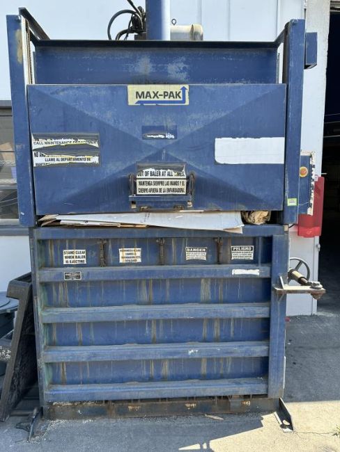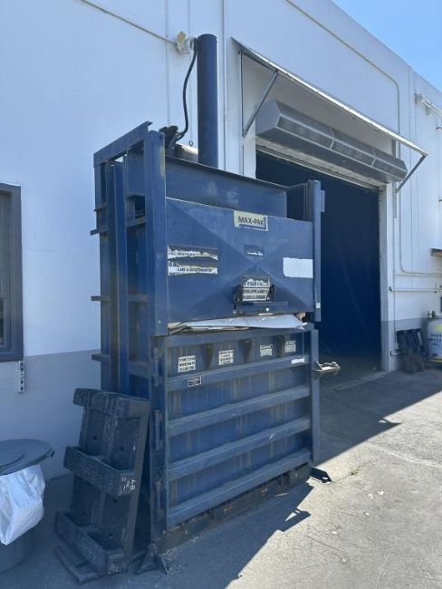 Max-Pak MP60HD Bale size approx. 30" x 48"x 60", Bale weights up to 1300 lbs., shredded ONP and 1150 lbs. for OCC, 460v. HIT# 2498447. Loc: Outside. Asset Located at 228 Shaw Road, South San Francisco, CA 94080.