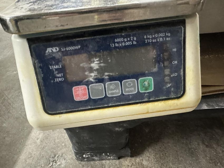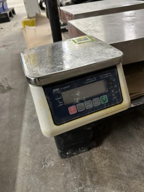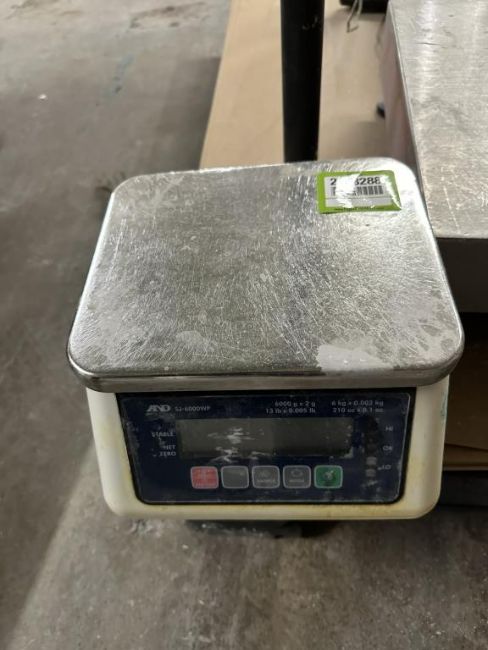 A&D Weighing SJ-6000WP Compact Bench Scale, 6 kg x 0.002 kg. HIT# 2498288. Loc: Loading Dock. Asset Located at 250 Hillside Blvd., South San Francisco, CA 94080.