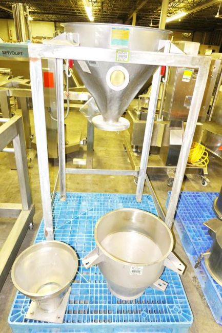 (Lot of 3) Stainless Steel Filter Housing. Feeders To Include (1ea) Vacumax Filter Housing On Stand, K-Tron Powder Screw Feeder & Small Feed Cone. As Shown- On 1-Pallet. Asset# EN 001250, EN 002490. HIT# 2525471. Asset Located at 5855 Rockwell Road, Winchester, KY 40391.