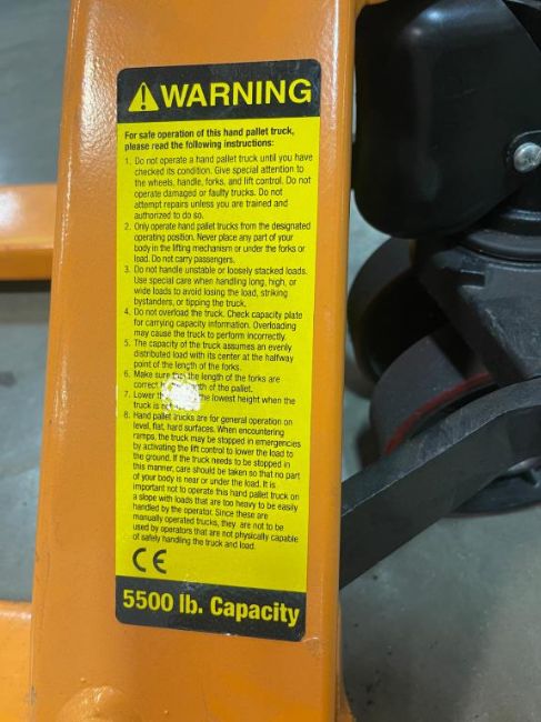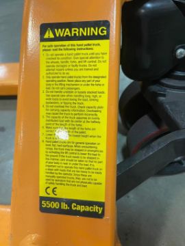 Global Industrial Pallet Jack, 5500 lb. Capacity . HIT# 2371273. Asset Located at 13691 Danielson St. Unit A, Poway, CA 92064.