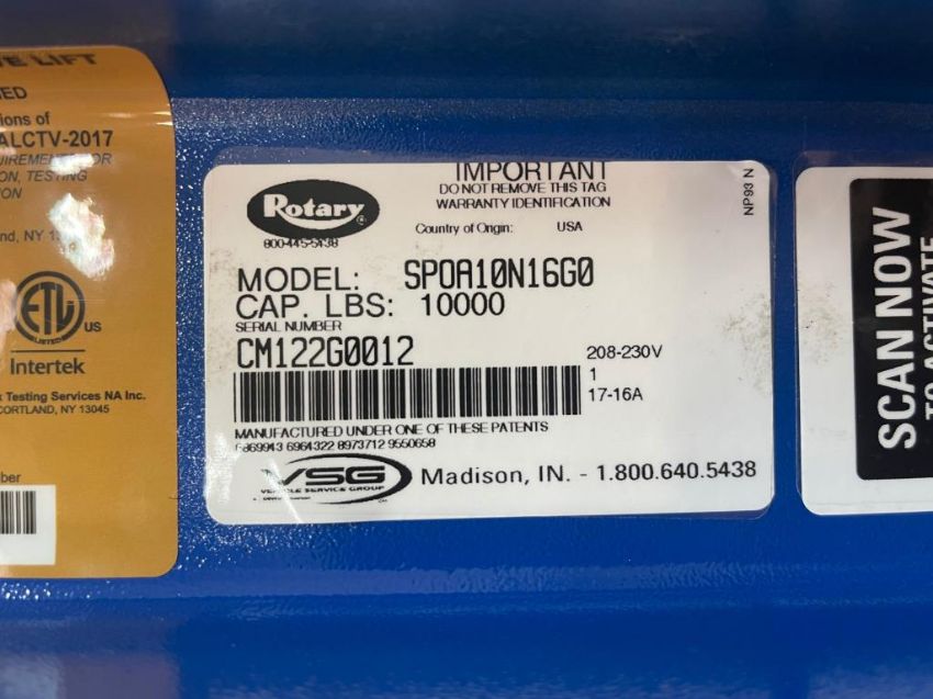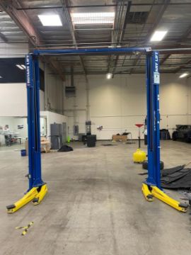 Rotary SP0A10N16G0 10000 lb. Capacity Two-Post Symmetrical Lift, 2 HP, 1700 RPM. SN# CM122G0012. HIT# 2371288. Asset Located at 14555 Alondra Blvd., La Mirada, CA 90638. *Please Note: As a courtesy to our buyers, the lift has been rigged out and disassembled for pickup.*