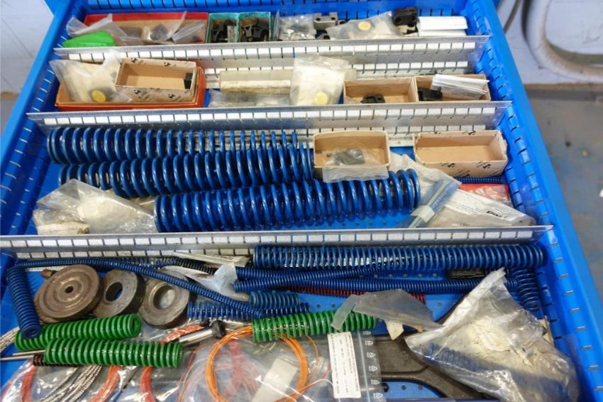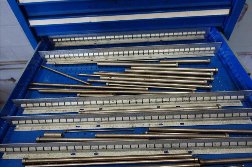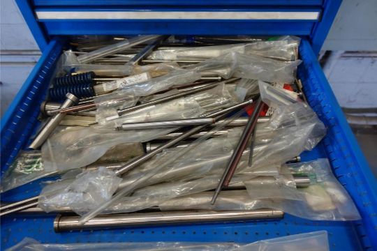 12-Drawer Tool Cabinet w/ Die Parts Contents Consisting of: Die Pins, Die Heaters, and Die Springs (Please Inspect). ***AUCTIONEER NOTICE*** Removal Deadline is December 20th - No Exceptions. HIT# 2483087. Asset Located at 400 Parkland Dr., Charlotte, MI 48813.