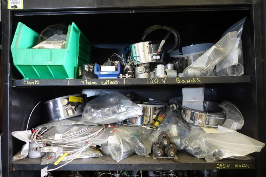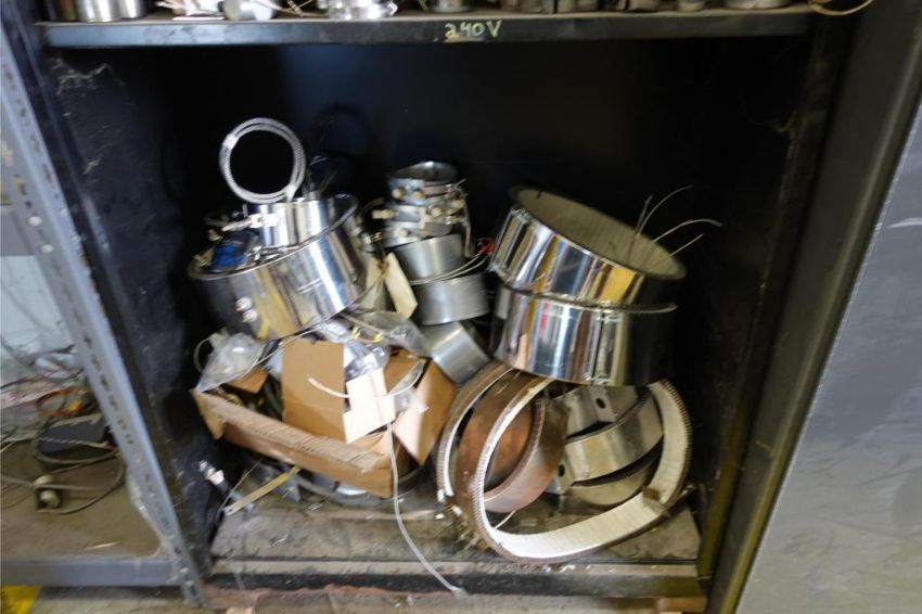 Light Duty Shelving Unit w/ Assorted Heater Bands (Please Inspect). ***AUCTIONEER NOTICE*** Removal Deadline is December 20th - No Exceptions. HIT# 2483091. Asset Located at 400 Parkland Dr., Charlotte, MI 48813.