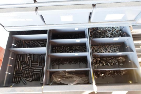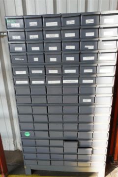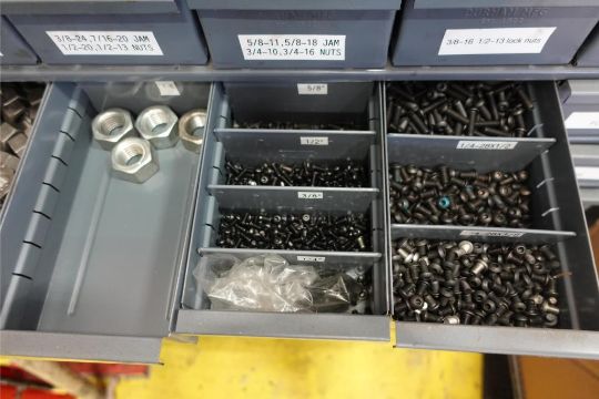 Lot (2) 96-Drawer Parts Bins w/ Contents Consisting of: Nuts, Bolts, Dowels, Screws, and Washers. ***AUCTIONEER NOTICE*** Removal Deadline is December 20th - No Exceptions. HIT# 2483093. Asset Located at 400 Parkland Dr., Charlotte, MI 48813.