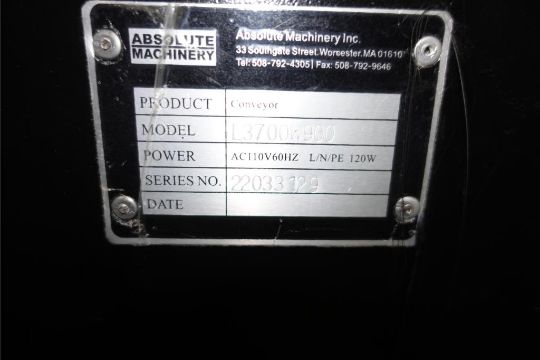 Absolute Machinery L3700W900 12' x 35.5" Belt Conveyor 110 v, 60 Hz w/ Custom Built Aluminum Safety Cage. ***AUCTIONEER NOTICE*** Removal Deadline is December 20th - No Exceptions. SN# 22033129. HIT# 2483145. Asset Located at 400 Parkland Dr., Charlotte, MI 48813. *Sale is Subject to Seller Confirmation.*
