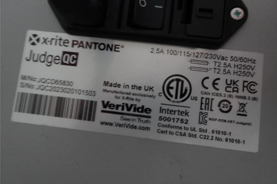 X-RITE Judge QC Approx. 27" x 19.5" x 16" Light Booth, 230 v, 50/60 Hz. ***AUCTIONEER NOTICE*** Removal Deadline is December 20th - No Exceptions. SN# JQC2023020101503. HIT# 2483262. Asset Located at 400 Parkland Dr., Charlotte, MI 48813.