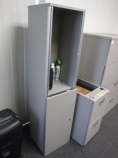 Assorted Office Cabinets Consisting of: (1) 4-Drawer Filing Cabinet, (1) 2-Drawer Undercounter Filing Cabinets, (1) 2-Door Cabinet (1 Door Missing), (1) 2-Drawer Filing Cabinet, (1) 6 'x 16" Training Room Table, and (1) 2-Tier 4' Tall Bookshelf. ***AUCTIONEER NOTICE*** Removal Deadline is December 20th - No Exceptions. Hit# 2516007 2nd floor office area on left. Asset Located at 12163 Globe Street Livonia, MI 48150.