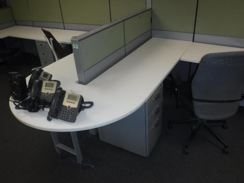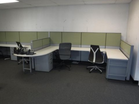 Lot of Assorted Office Furniture Consisting of: (5) Partition Worksurfaces, (12) Partition Walls, (3) 3-Drawer Under Counter Filing Cabinets, (1) 4-Leg Rollaround Office Chair, and (3) 5-Caster Office Chairs. ***AUCTIONEER NOTICE*** Removal Deadline is December 20th - No Exceptions. Hit# 2516006 2nd floor office area on left. Asset Located at 12163 Globe Street Livonia, MI 48150.