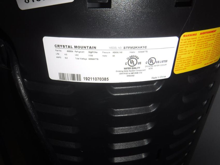 Crystal Mountain STFM2KHK1C Water Dispenser, 500 W, Refrigerant Type: 32gR134a. ***AUCTIONEER NOTICE*** Removal Deadline is December 20th - No Exceptions. Hit# 2516017 Breakroom. Asset Located at 12163 Globe Street Livonia, MI 48150.