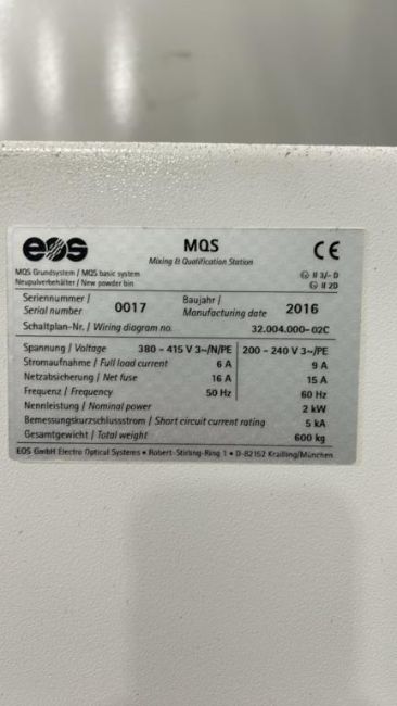 EOS MQS Mixing & Qualification Station, Year 2016. ***AUCTIONEER NOTICE*** Removal Deadline is December 20th - No Exceptions. S/n# 0017. HIT# 2467092. Asset Located at 12163 Globe Street, Livonia, MI 48150.