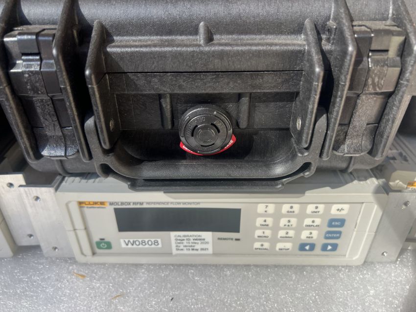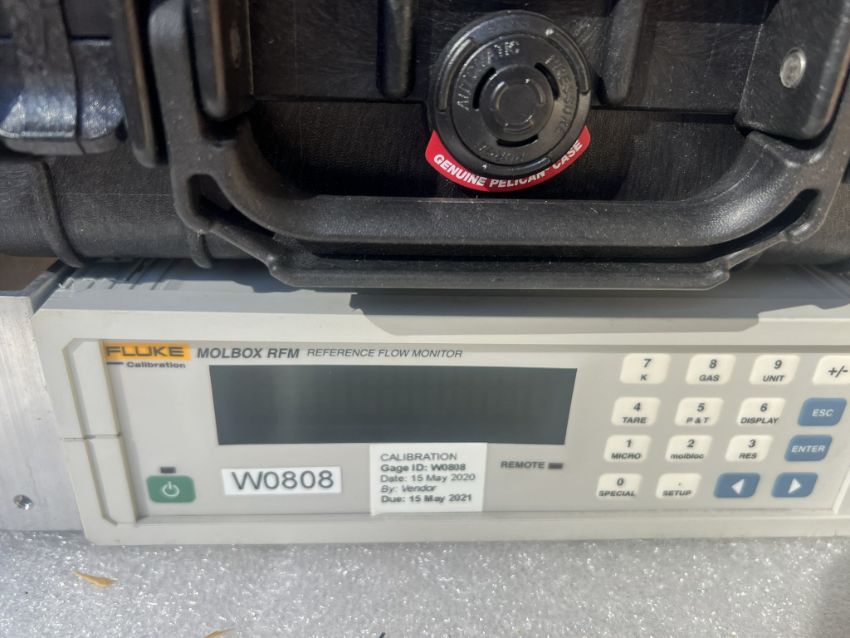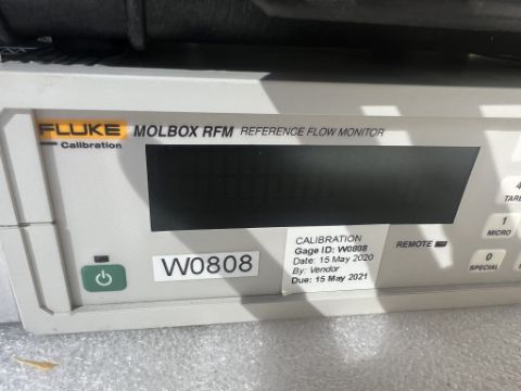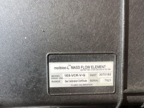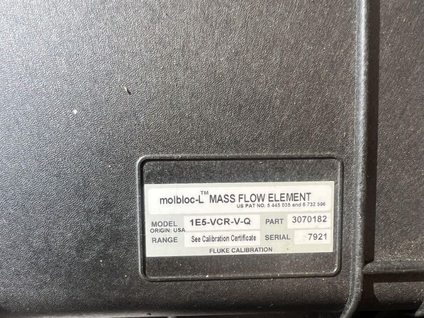 Laminar Flow System to include (1) Fluke 1E5-VCR-V-Q molbloc-L Laminar Mass Flow Element and (1) Fluke molbox RFM Flow Monitor. Case Included. Asset Located at 26545 Danti Court, Hayward, CA 94545.
