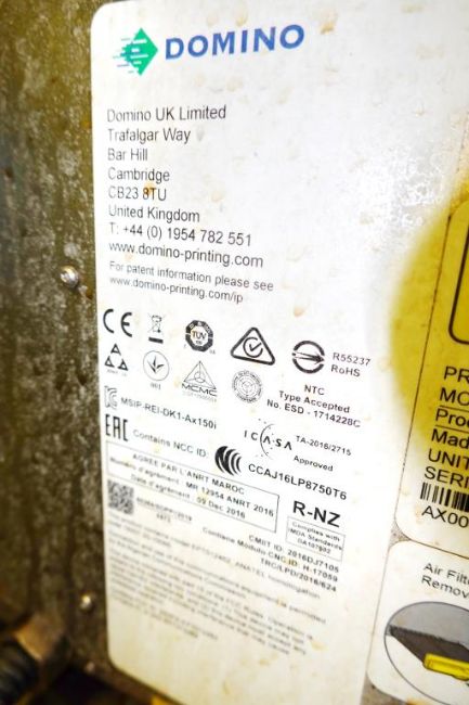 Domino AX150i Batch Printing Machine, Enables Maximum Printing Flexibility. HIT# 2481894. Loc: Packaging. Asset Located at 3725 Greenwood St., San Diego, CA 92110.
