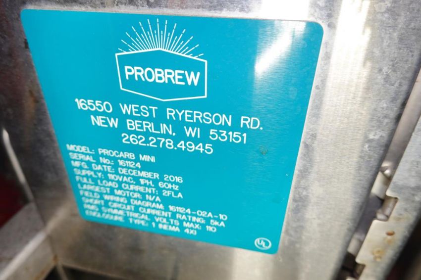 ProBrew Procarb Mini Mobile Carbonation and Nitrogenation System With Allen Bradley Display Controller. Date of Manufacture 12-2016. SN# 161124. HIT# 2481890. Loc: Brewery. Asset Located at 3725 Greenwood St., San Diego, CA 92110.