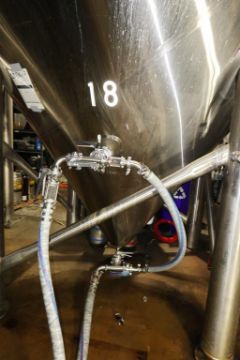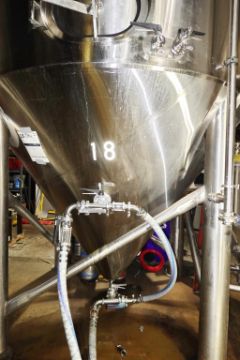 Marks/GB&W Stainless Steel 240 BBL Fermenter Tank # 18. HIT# 2481861. Loc: Brewery 3725. Asset Located at 3725 Greenwood St., San Diego, CA 92110.