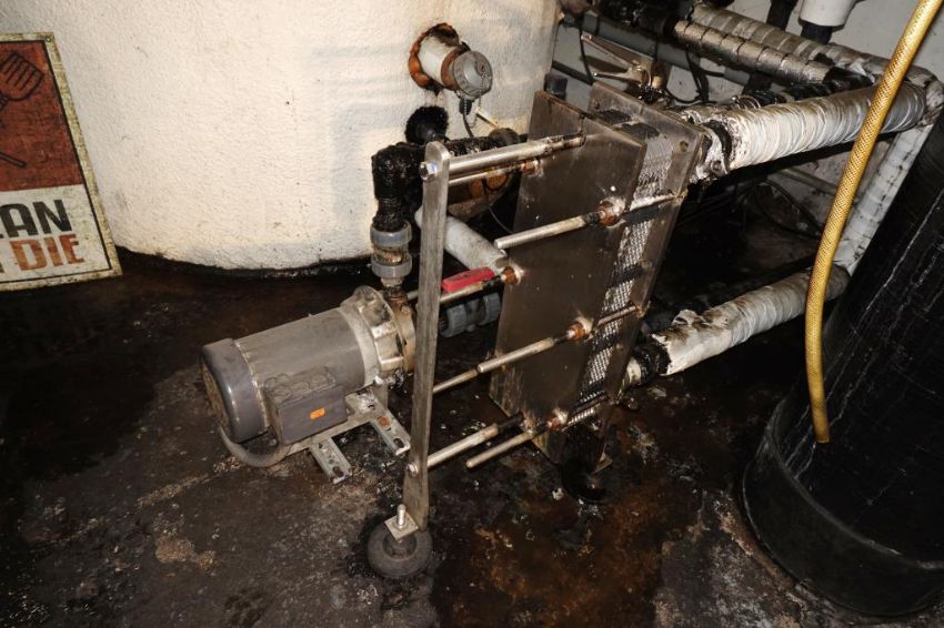 JVNW 100-BBLCold Liquor Tank With Pump & Heat Exchanger. HIT# 2481914. Loc: Brewery 3725. Asset Located at 3725 Greenwood St., San Diego, CA 92110.