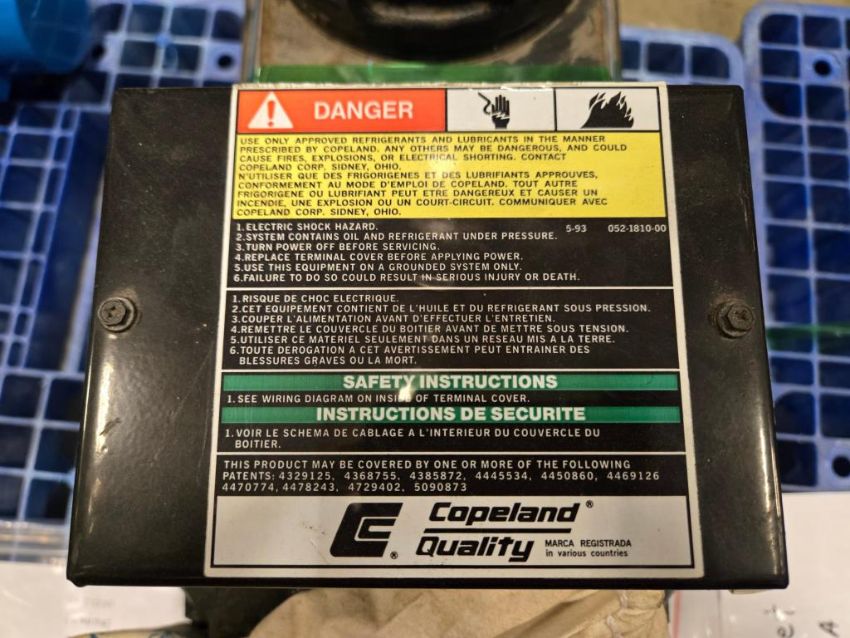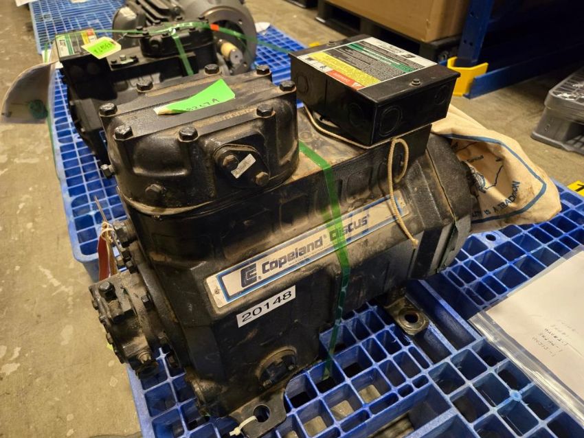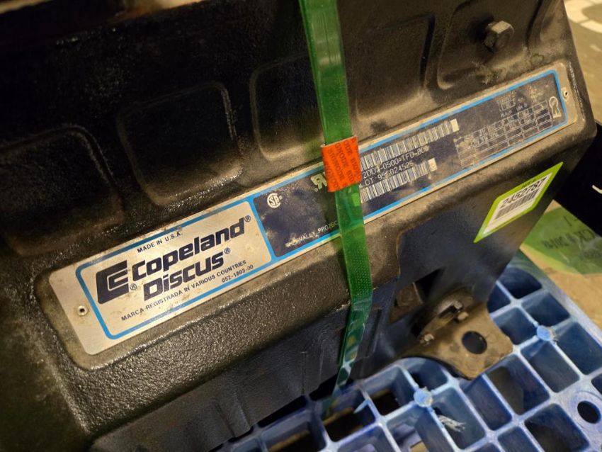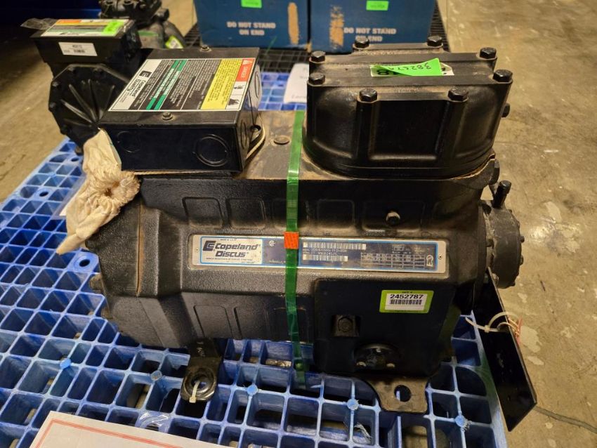Copeland 2DD3-0500-TFD-800 38267A Semi-Hermetic Compressor, R 22, 62000btu, 5hp, 3 Phase, 460V, 60Hz. ***AUCTIONEER NOTICE*** Removal Deadline is December 20th - No Exceptions. SN# CT95G02452S. HIT# 2452787. Row 1-S-2-R. Asset Located at 74 New York Ave., Framingham, MA 01701.