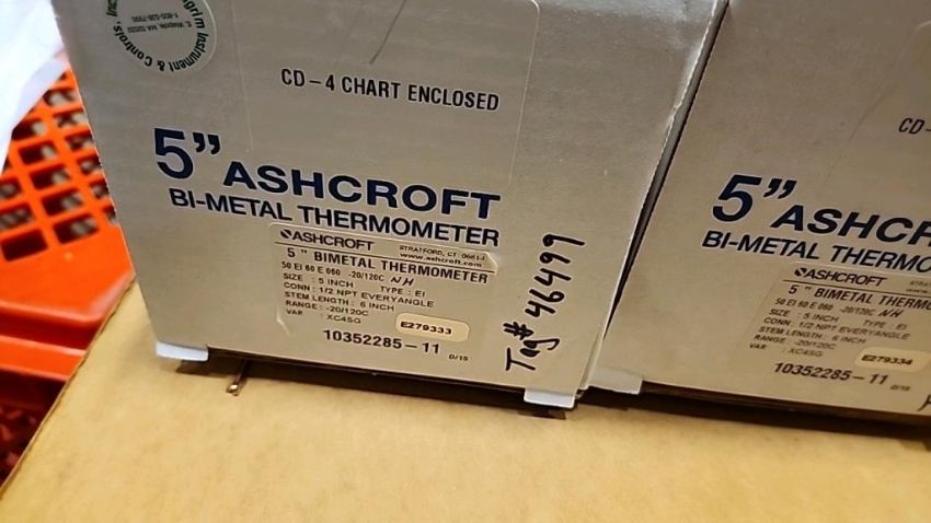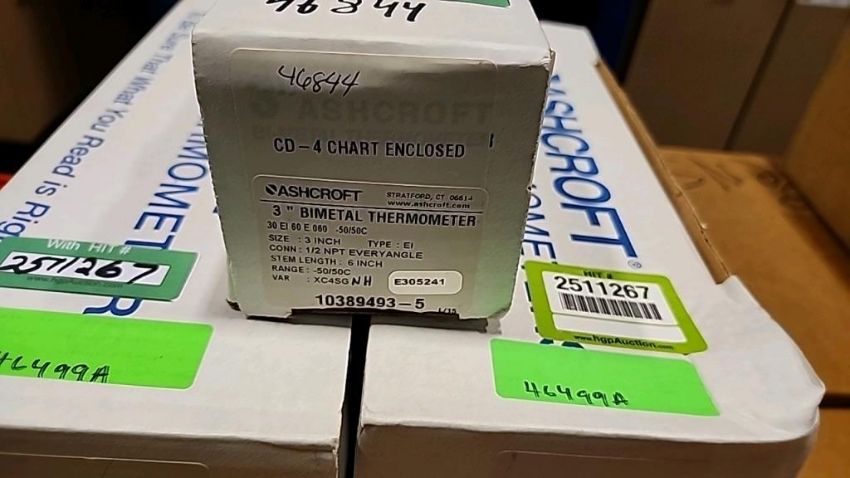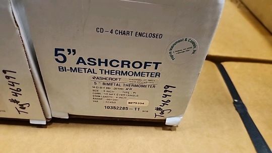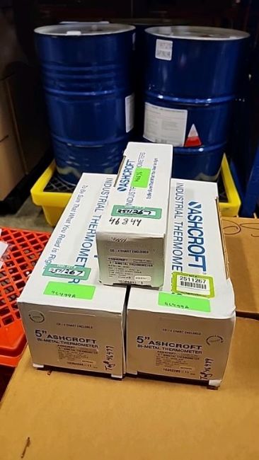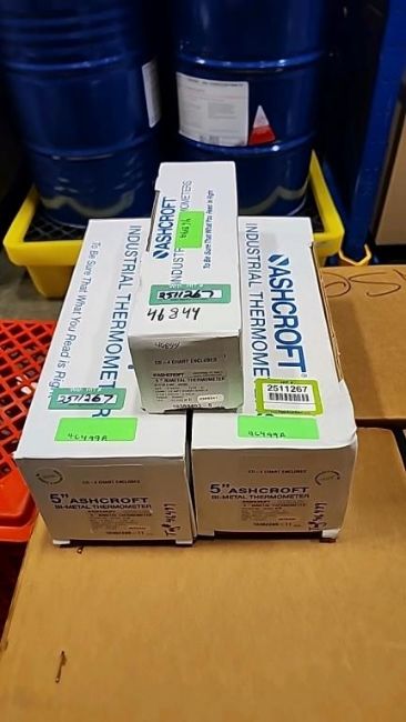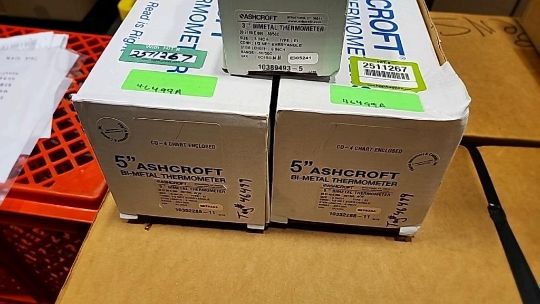 Lot of (3) Ashcroft Industrial 5" Bi-Metal Thermometers. HIT# 2511267. Row: 1-G-3-R.Asset Located at 74 New York Ave., Framingham, MA 01701.